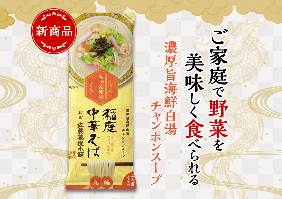 当社の稲庭中華そばシリーズに「ちゃんぽん」が加わりました。